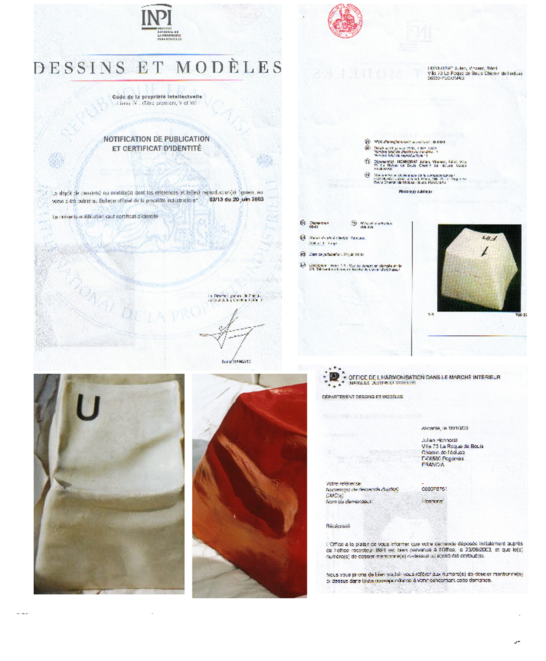 Fig. 5: Julien Honnorat, Dépôts à l'INPI et l'OHMI de Dessins et Modèles du concept de Tabouretouche, 2004.